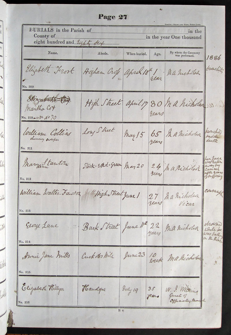 Comments in register: Bronchitis, sudden death. Chimney sweeper