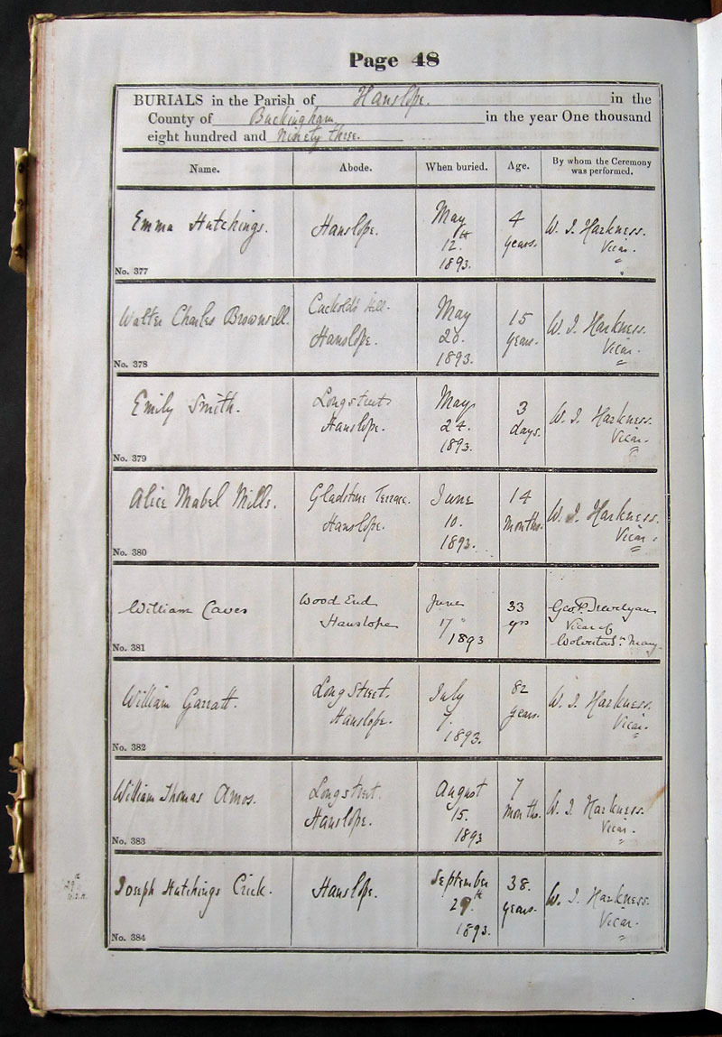 Below is a transcription and image of page 48 of the Burial register for 1878-1963 of St. James The Great, Hanslope |