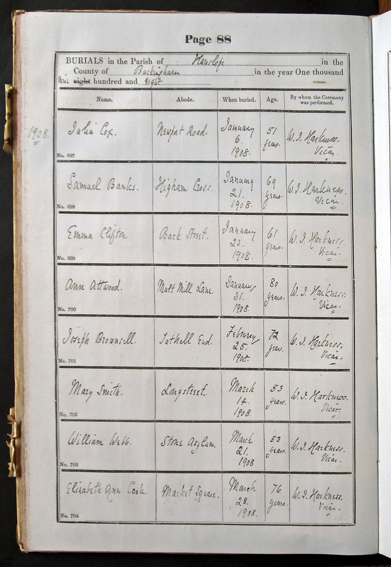 Below is a transcription and image of page 88 of the Burial register for 1878-1963 of St. James The Great, Hanslope |