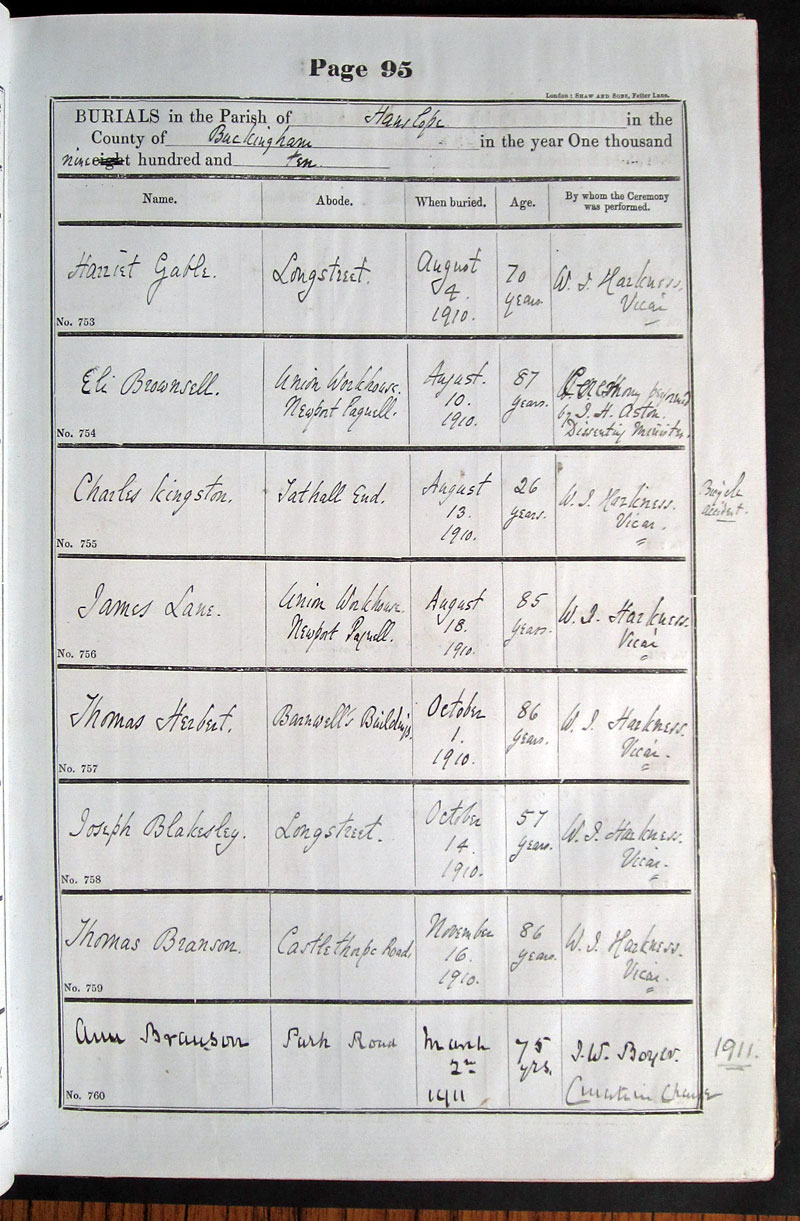 B U R I A L S in the Parish of .. Hanslope .. in the