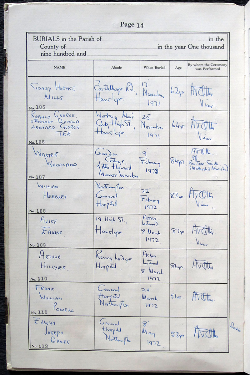 Comments in register: A T Otter pp Rev Tom Smith (Methodist Minister) |