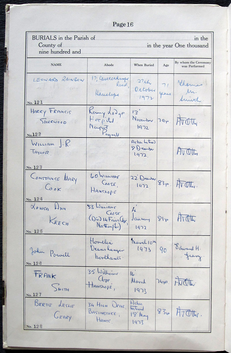 33 Williams Close (died 14 Friars Cl. Northampton) |