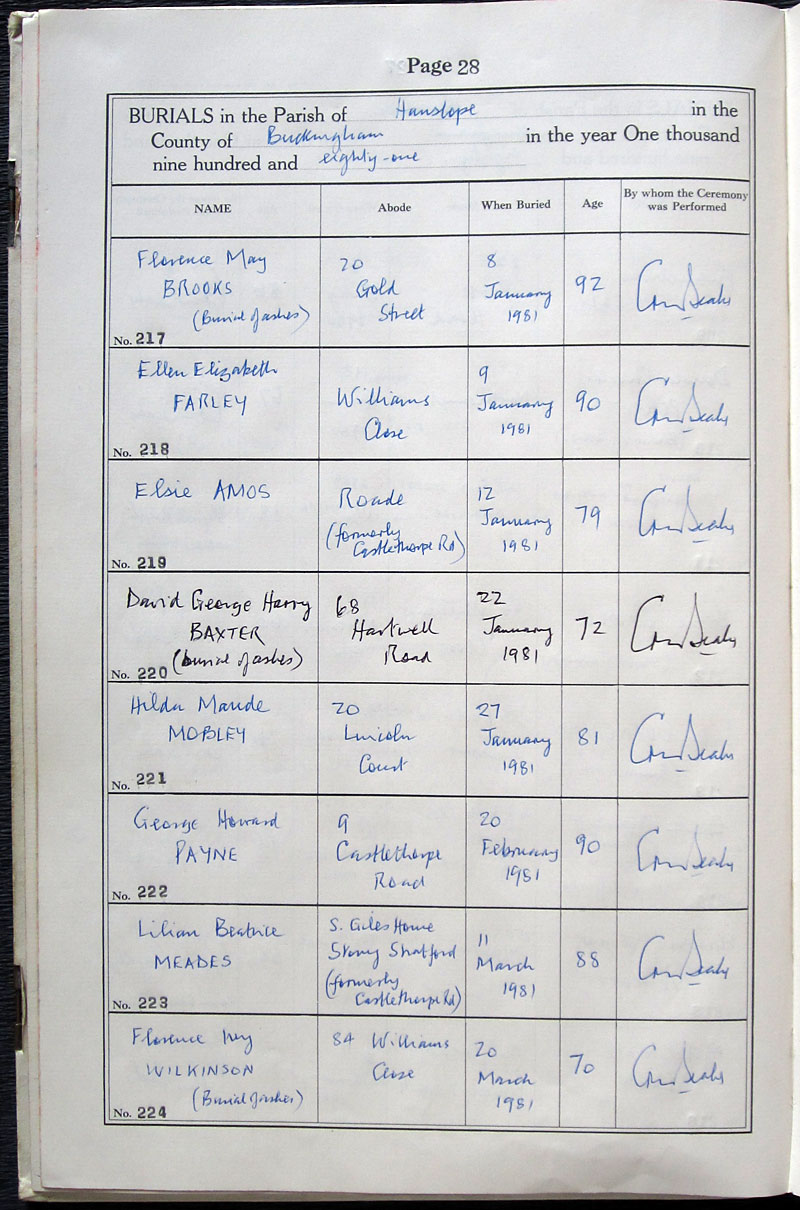 B U R I A L S in the Parish of .. Hanslope ..