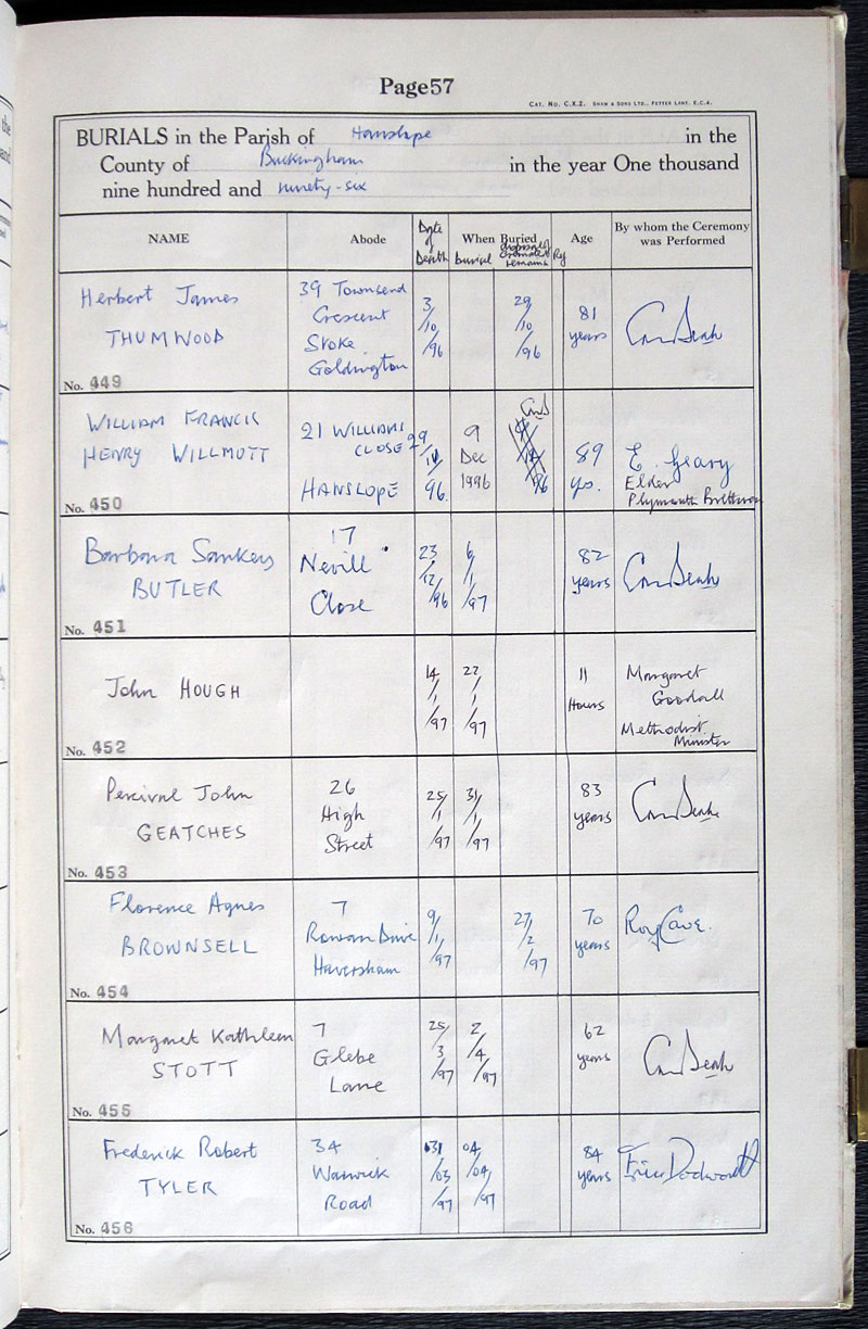 B U R I A L S in the Parish of .. Hanslope ..