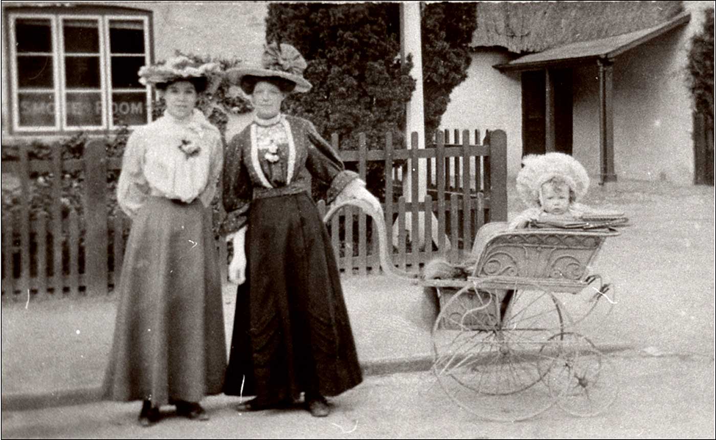 | Does anyone know these ladies? The photograph appears to have been taken in front of the old Cock. For further photographs of The Cock click here. | |||||