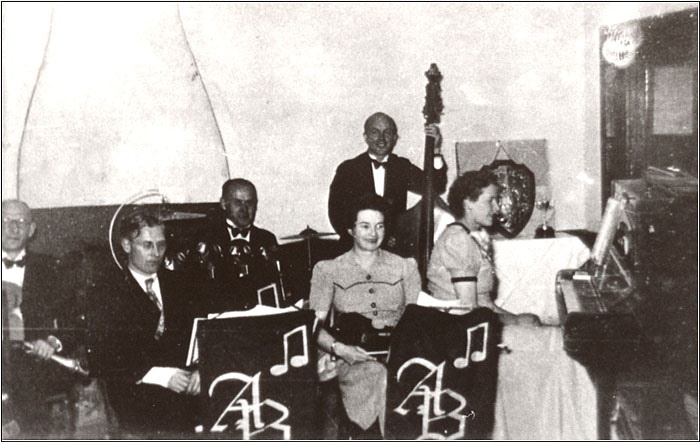 | L to R Arthur Chiltern(Trumpet), George Parkinson(Clarinet), Alf Bennett(Drums), Vera Higgs(Violin), Len Rainbow(Double Bass), and Jean Asher(Piano) | |||||