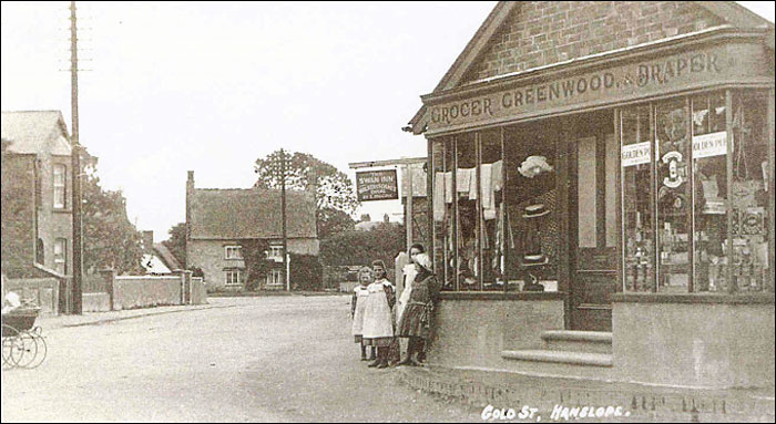 Maltings Farm is in the background. The sign behind the children is of the Swan Inn. The shop was run by Jemima Greenwood whose husband ran the Green Man. It was her second shop. The girl in the white hat is Jemima's eldest daughter Dorothy May. This shop became Trickers fish shop after WW2 and taken down circa 1970. |