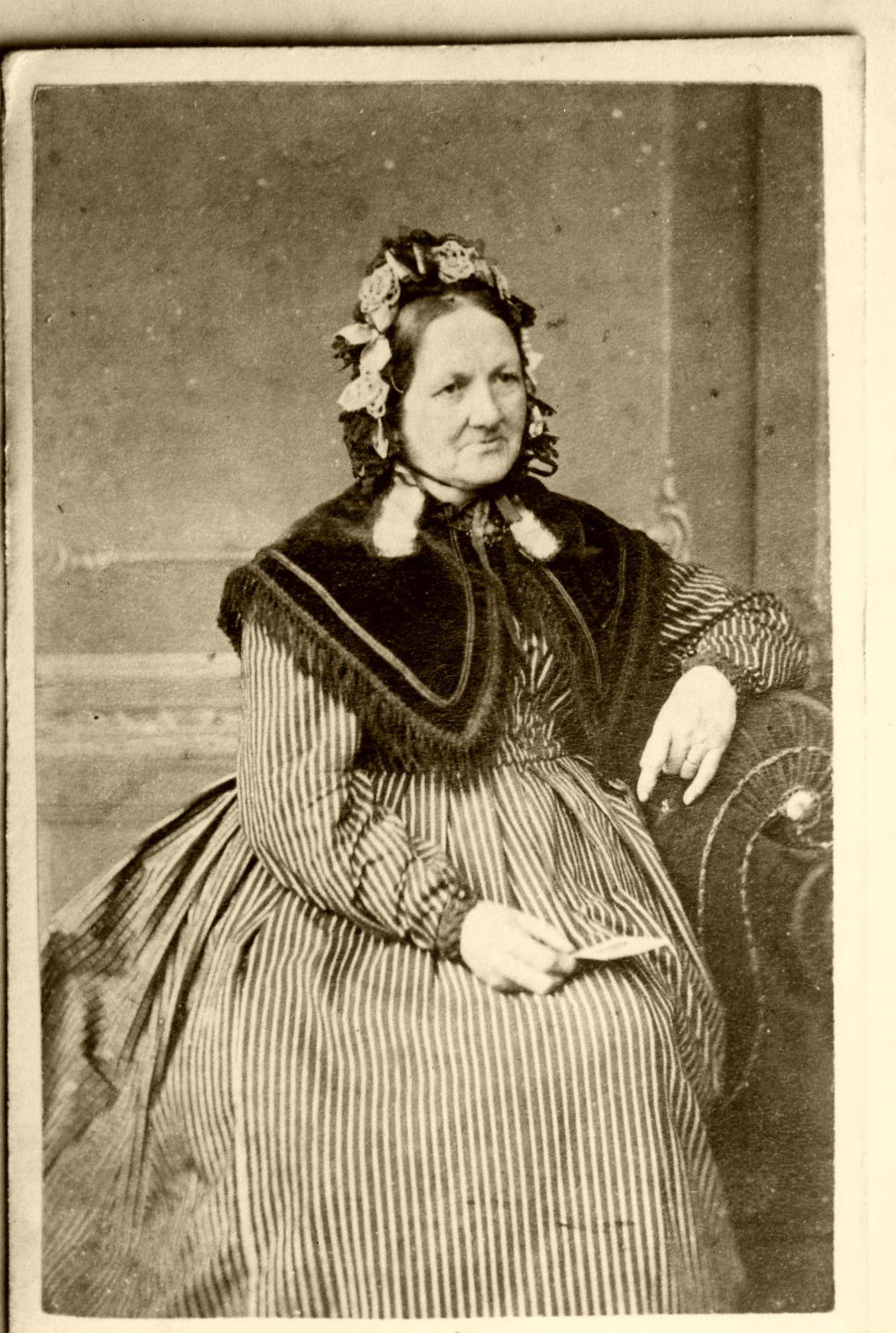 Dress style: about 1860, probably a widow in half mourning.