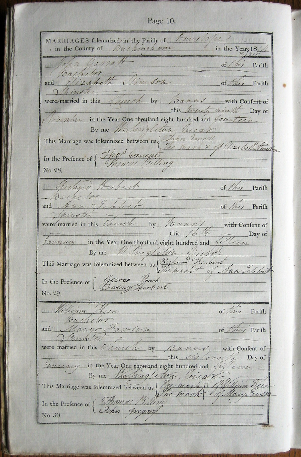 M A R R I A G E S solemnized in the Parish of ... Hanslope ...