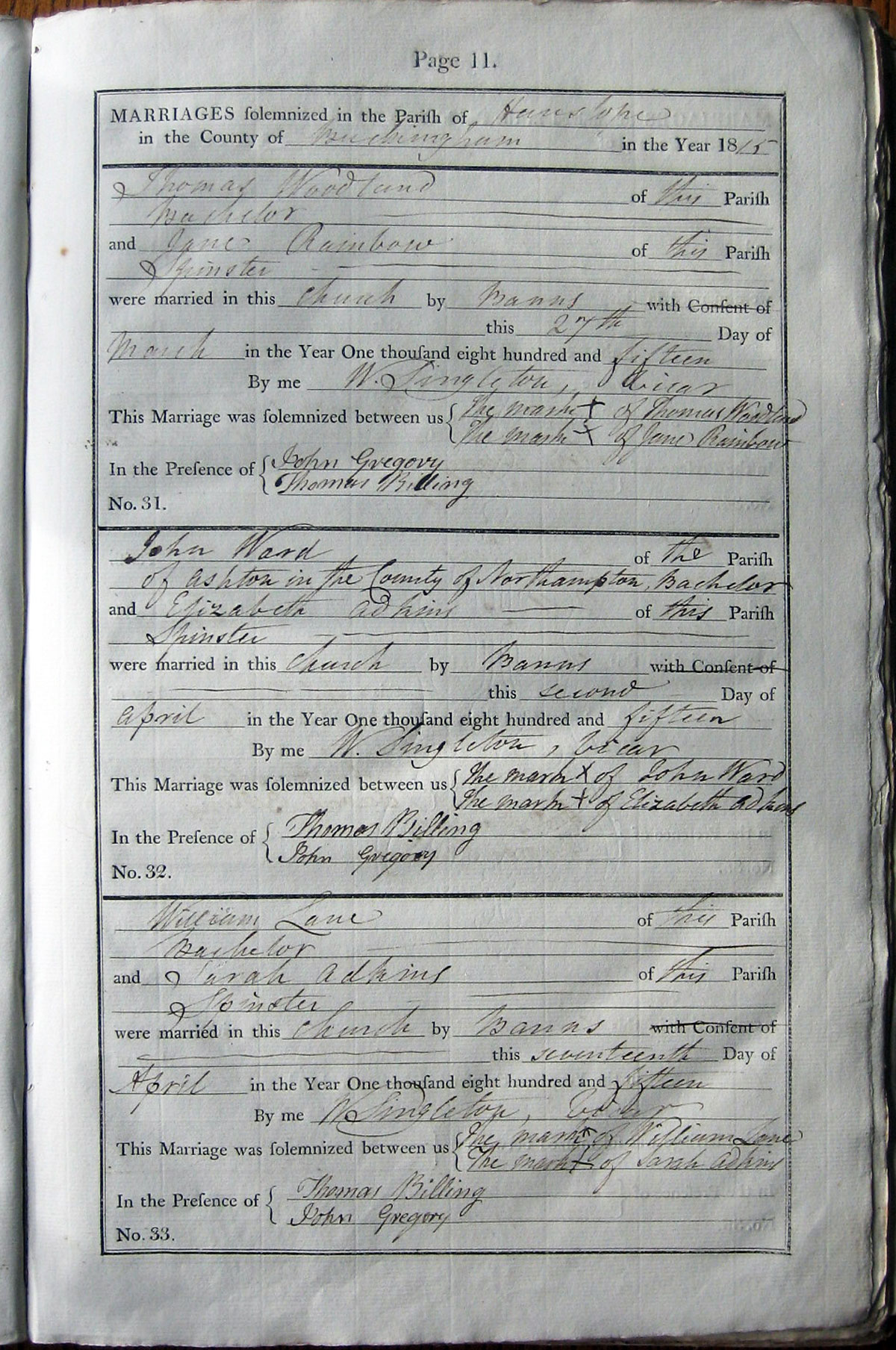 M A R R I A G E S solemnized in the Parish of ... Hanslope ...