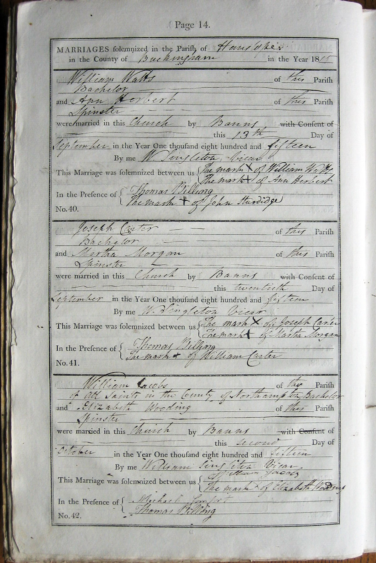 M A R R I A G E S solemnized in the Parish of ... Hanslope ...