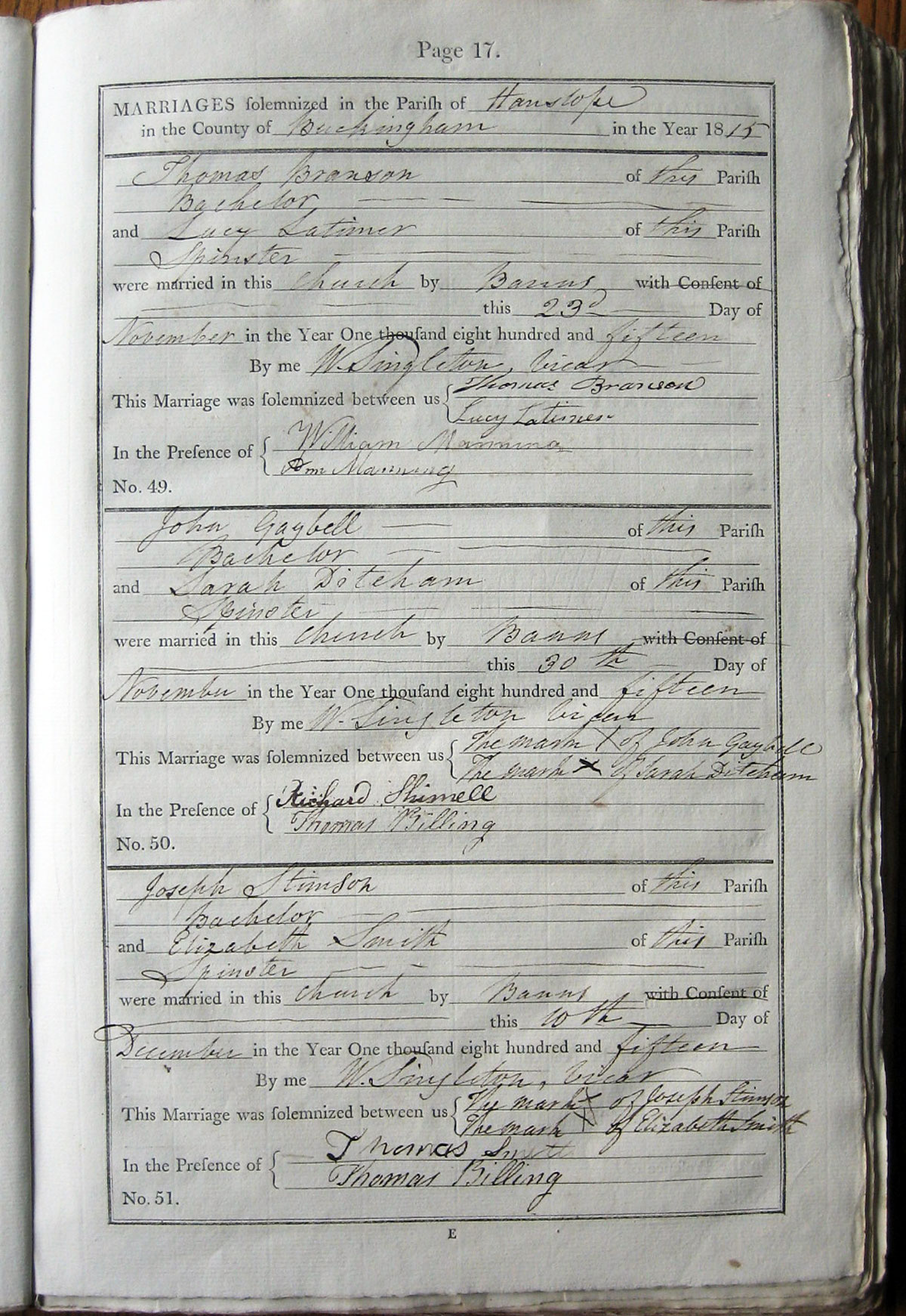 M A R R I A G E S solemnized in the Parish of ... Hanslope ...