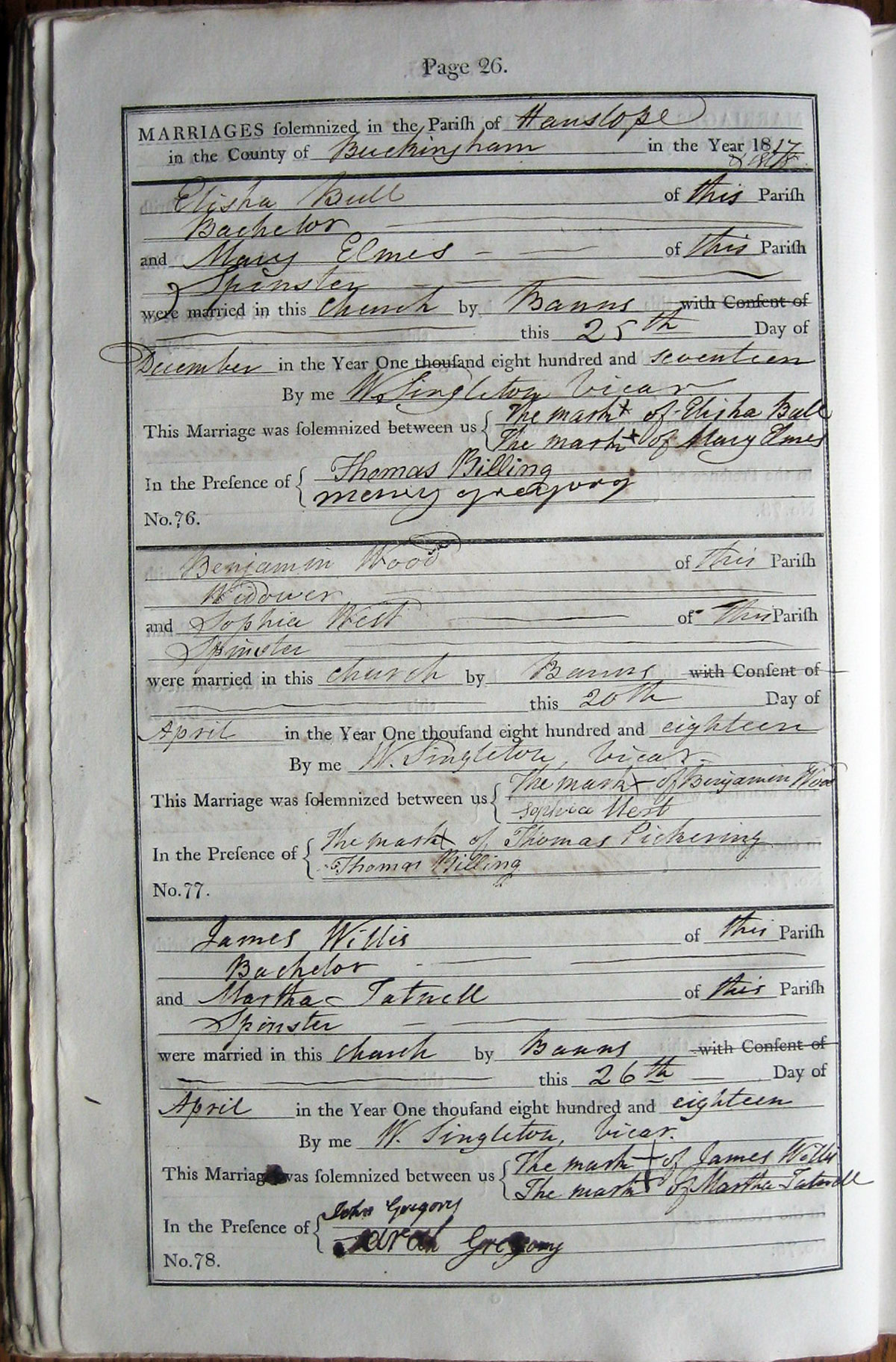 M A R R I A G E S solemnized in the Parish of ... Hanslope ...