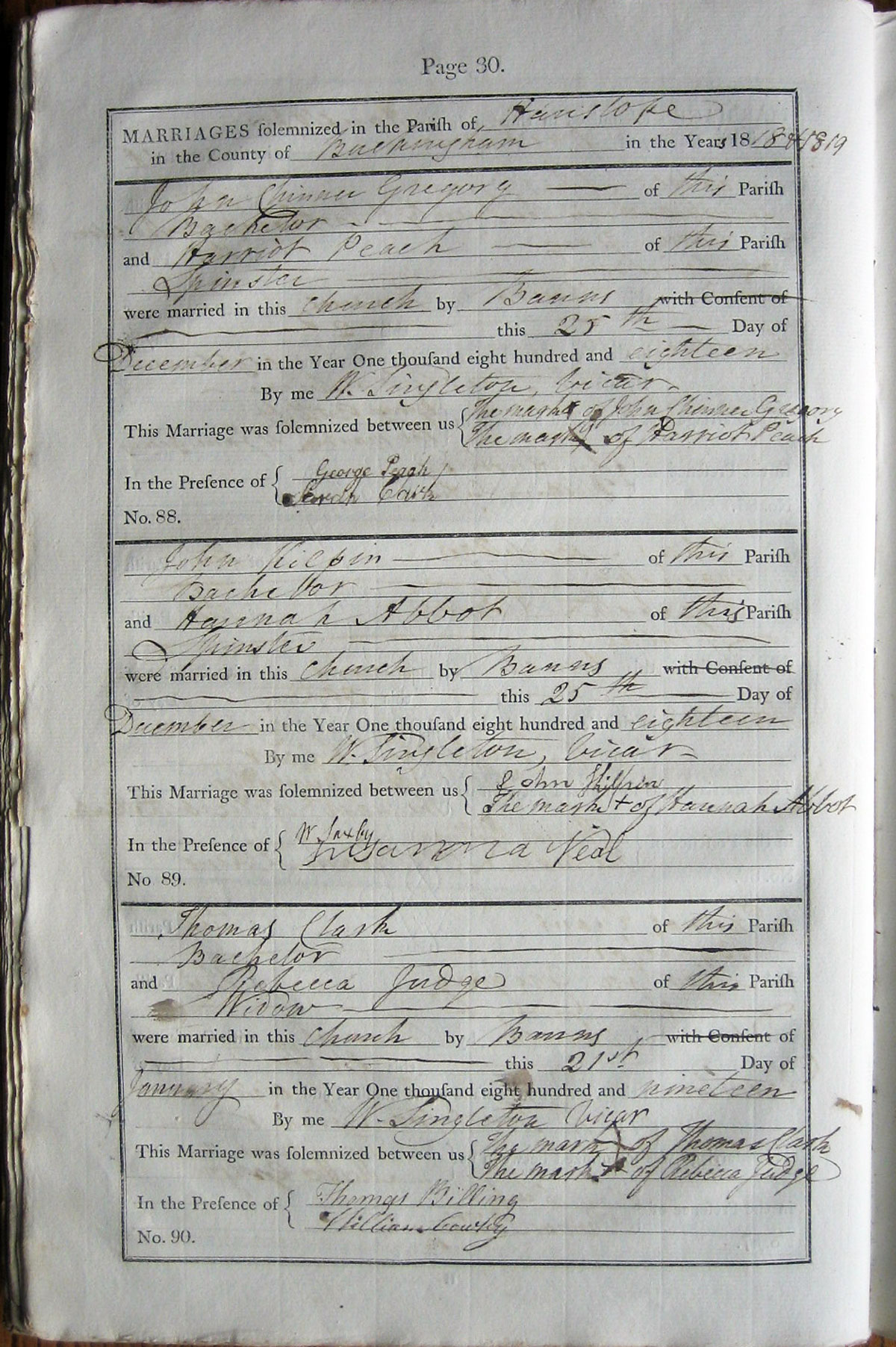 John Chinner Gregory,  Batchelor of the Parish of Hanslope,