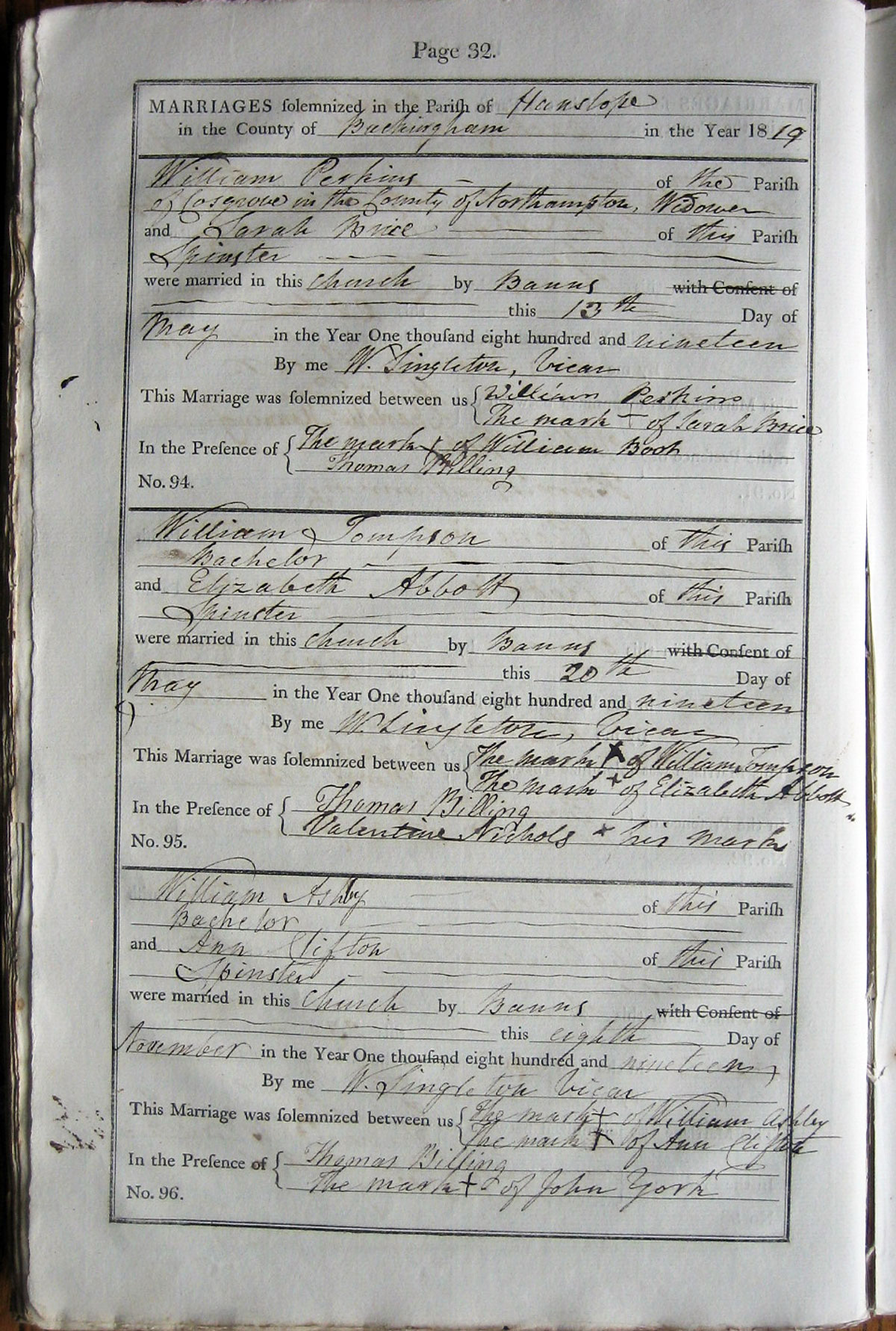 William Ashby,  Batchelor of the Parish of Hanslope,
