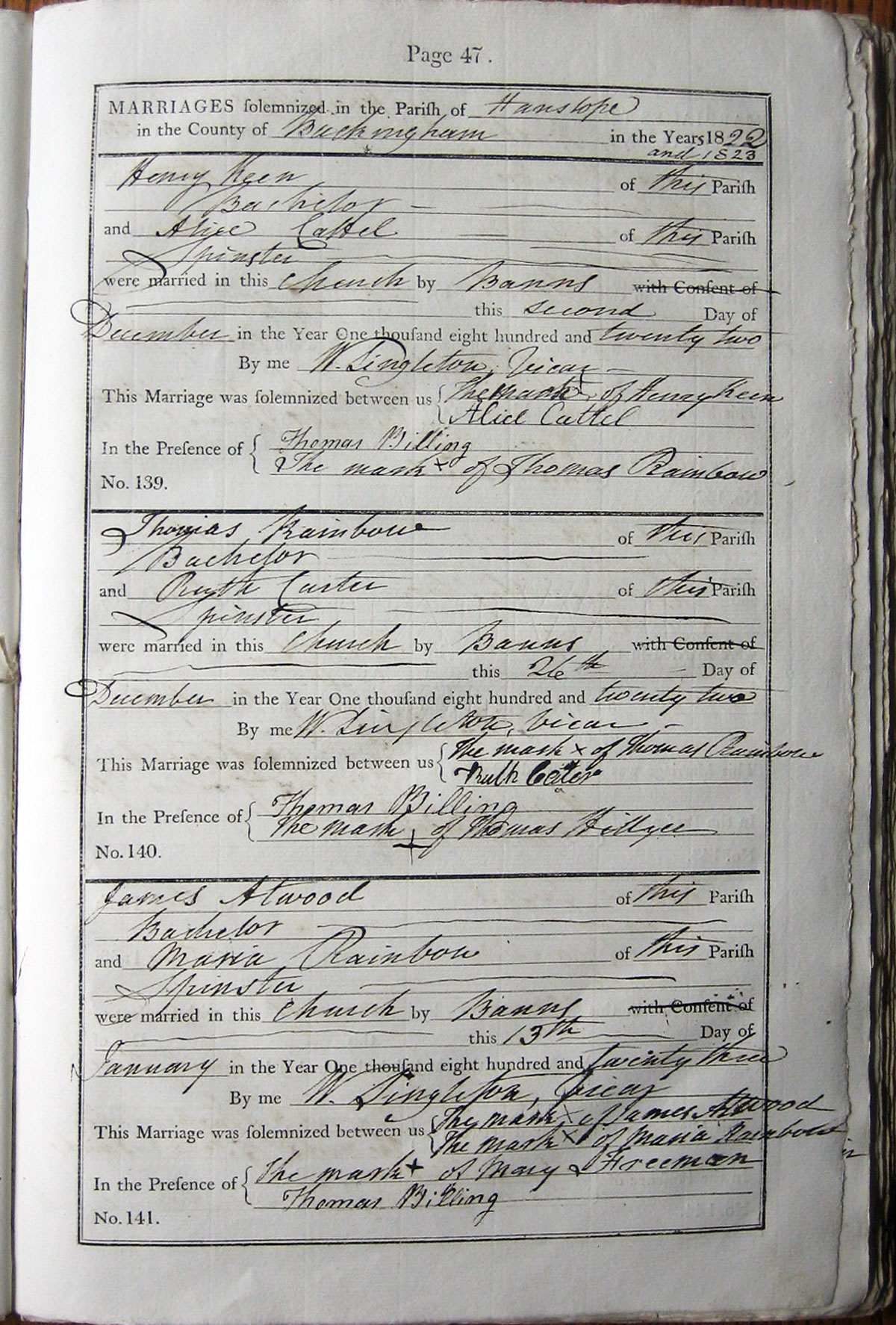 M A R R I A G E S solemnized in the Parish of ... Hanslope ...