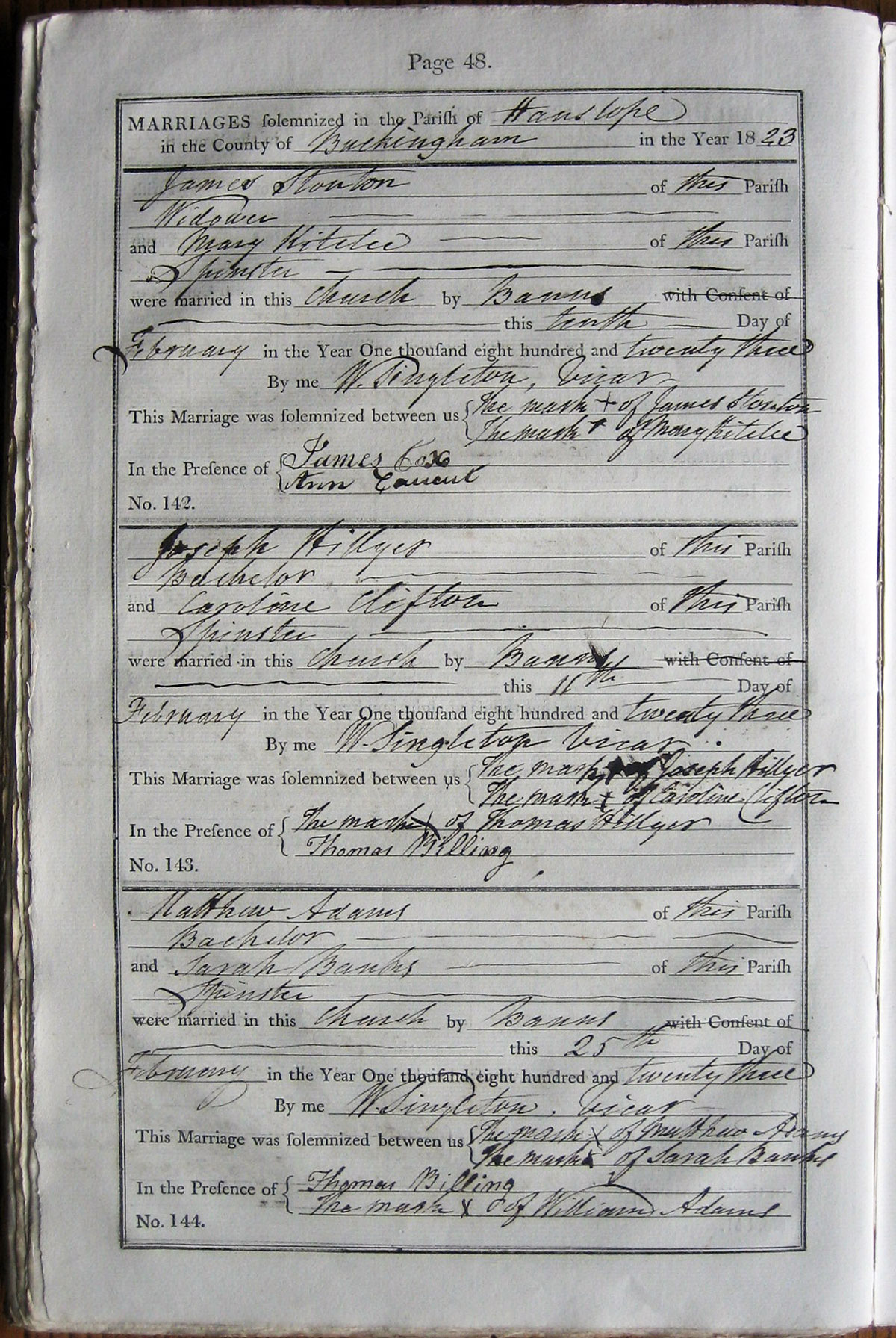 M A R R I A G E S solemnized in the Parish of ... Hanslope ...