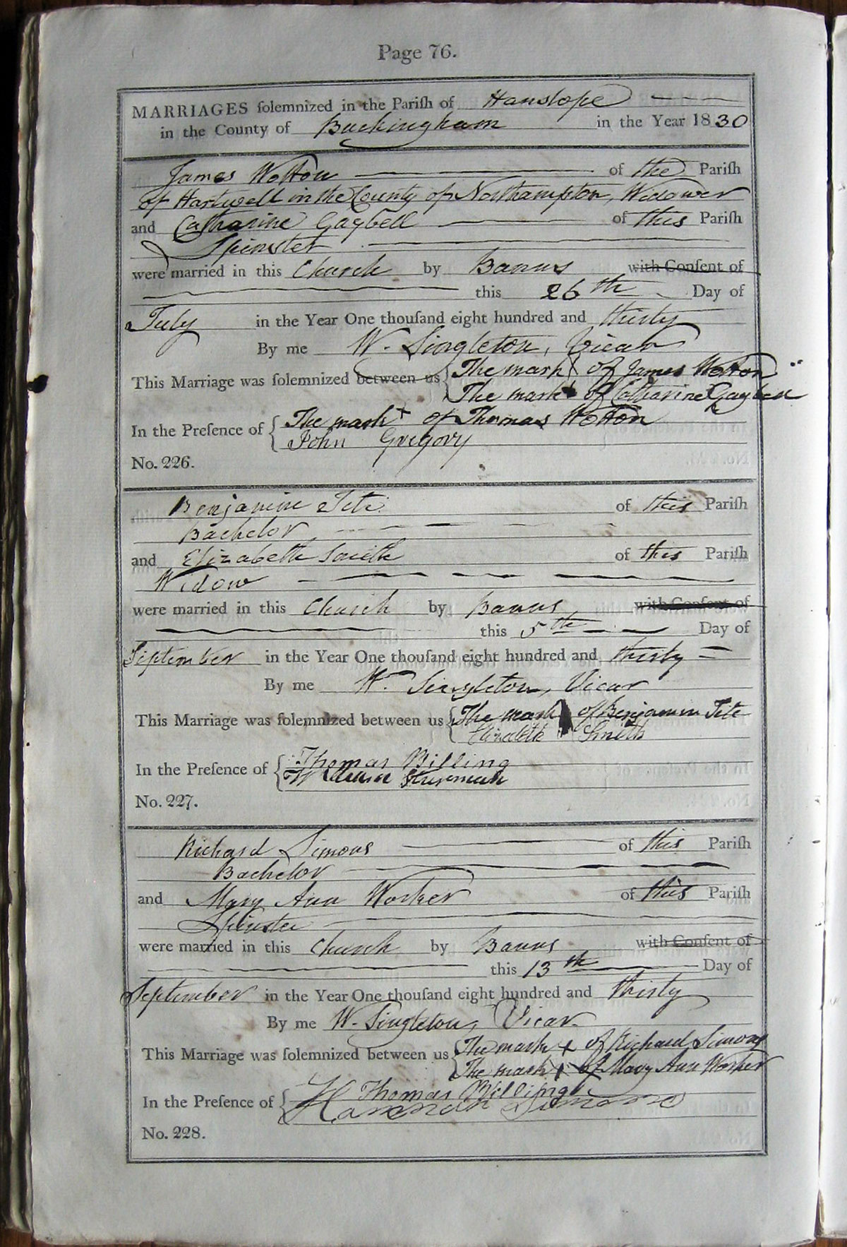 M A R R I A G E S solemnized in the Parish of ... Hanslope ...