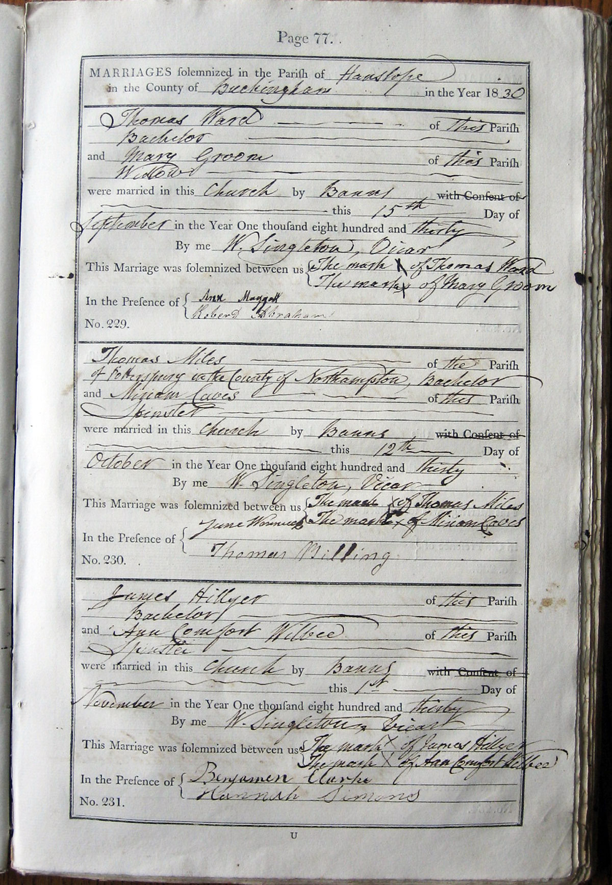 M A R R I A G E S solemnized in the Parish of ... Hanslope ...