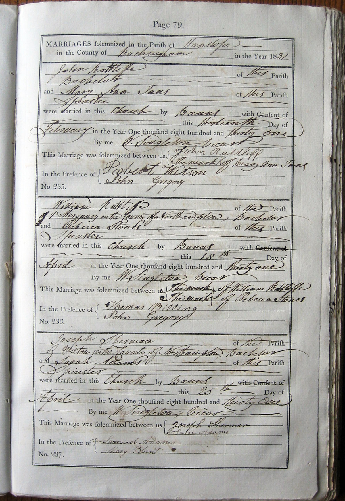 M A R R I A G E S solemnized in the Parish of ... Hanslope ...
