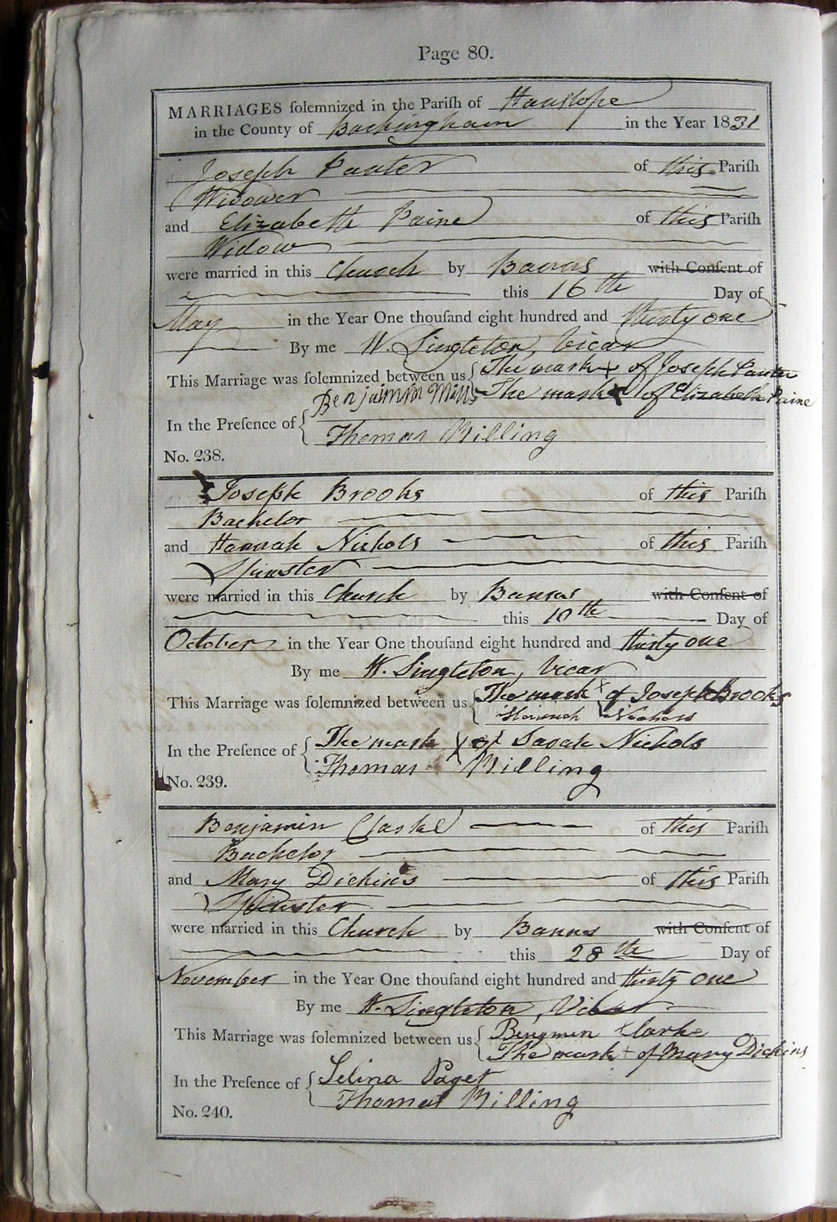 M A R R I A G E S solemnized in the Parish of ... Hanslope ...