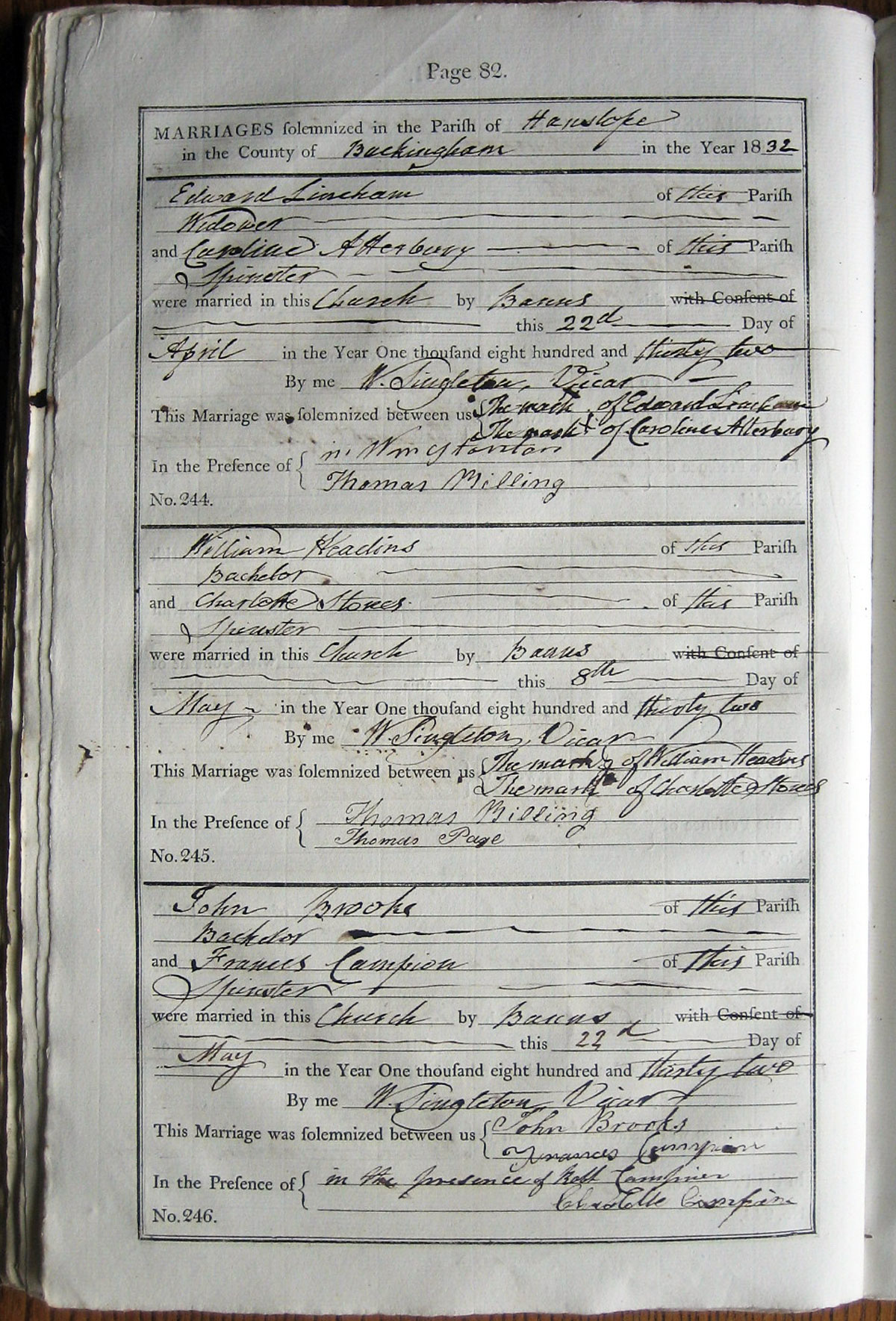 M A R R I A G E S solemnized in the Parish of ... Hanslope ...