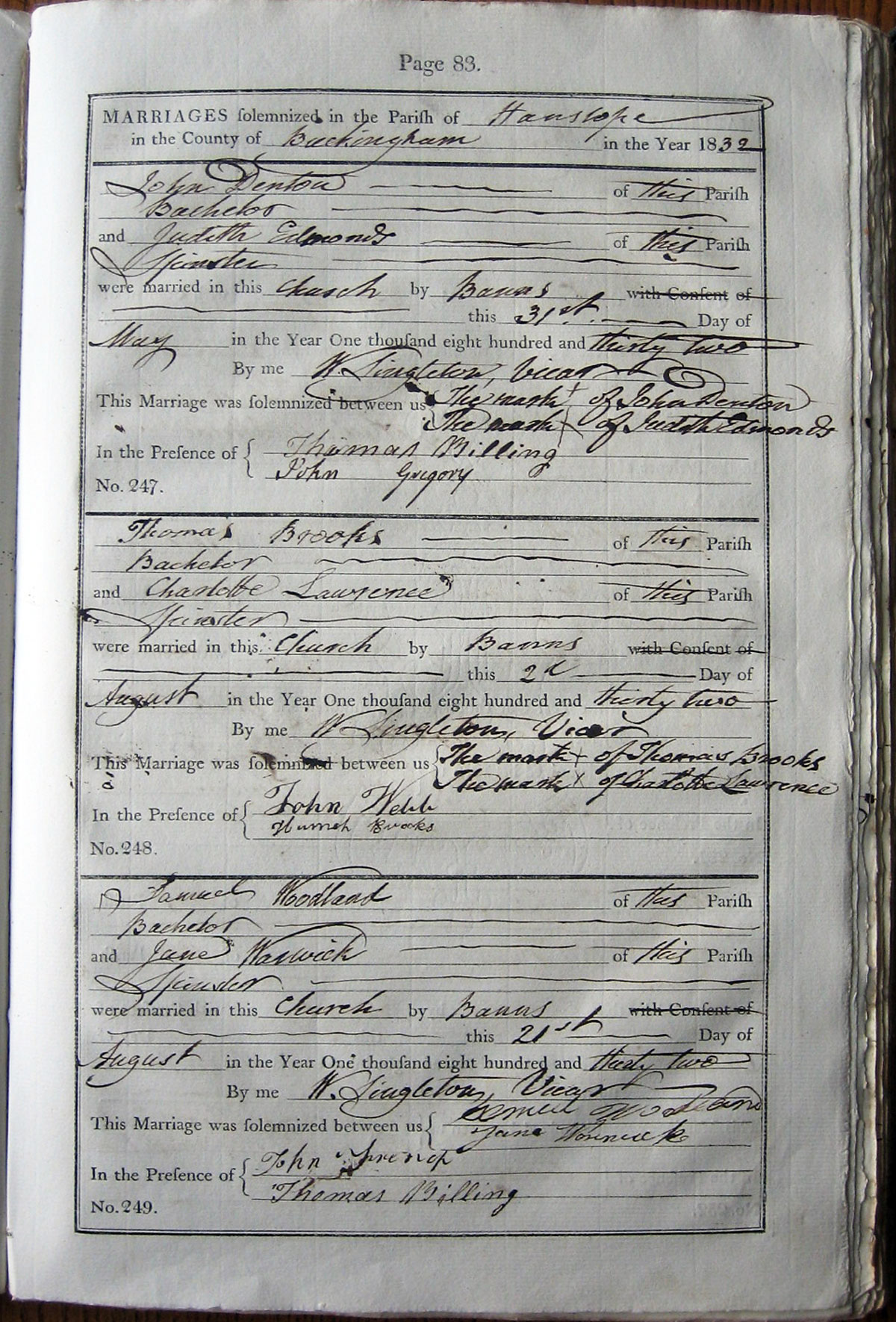 M A R R I A G E S solemnized in the Parish of ... Hanslope ...