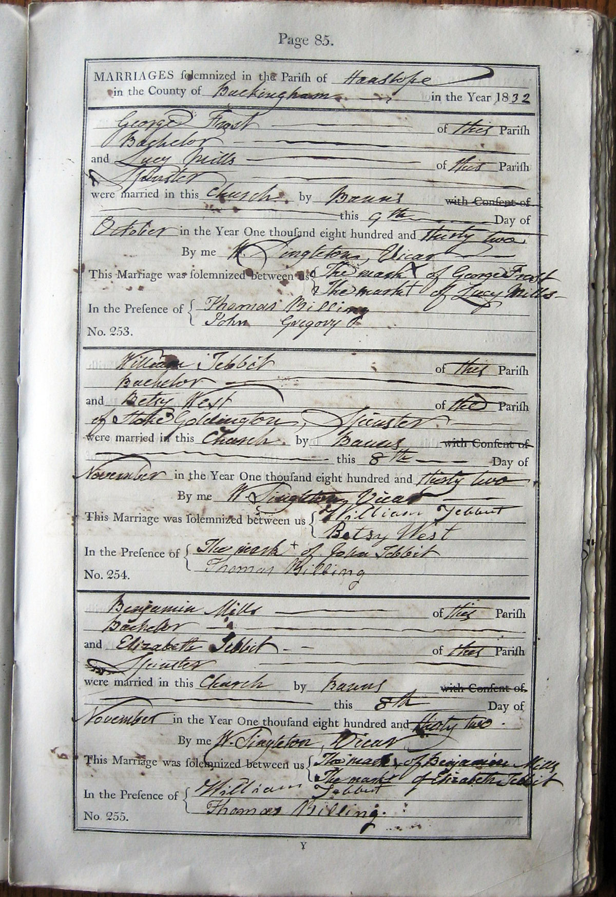 This marriage was solemnized between us signed William Tebbit