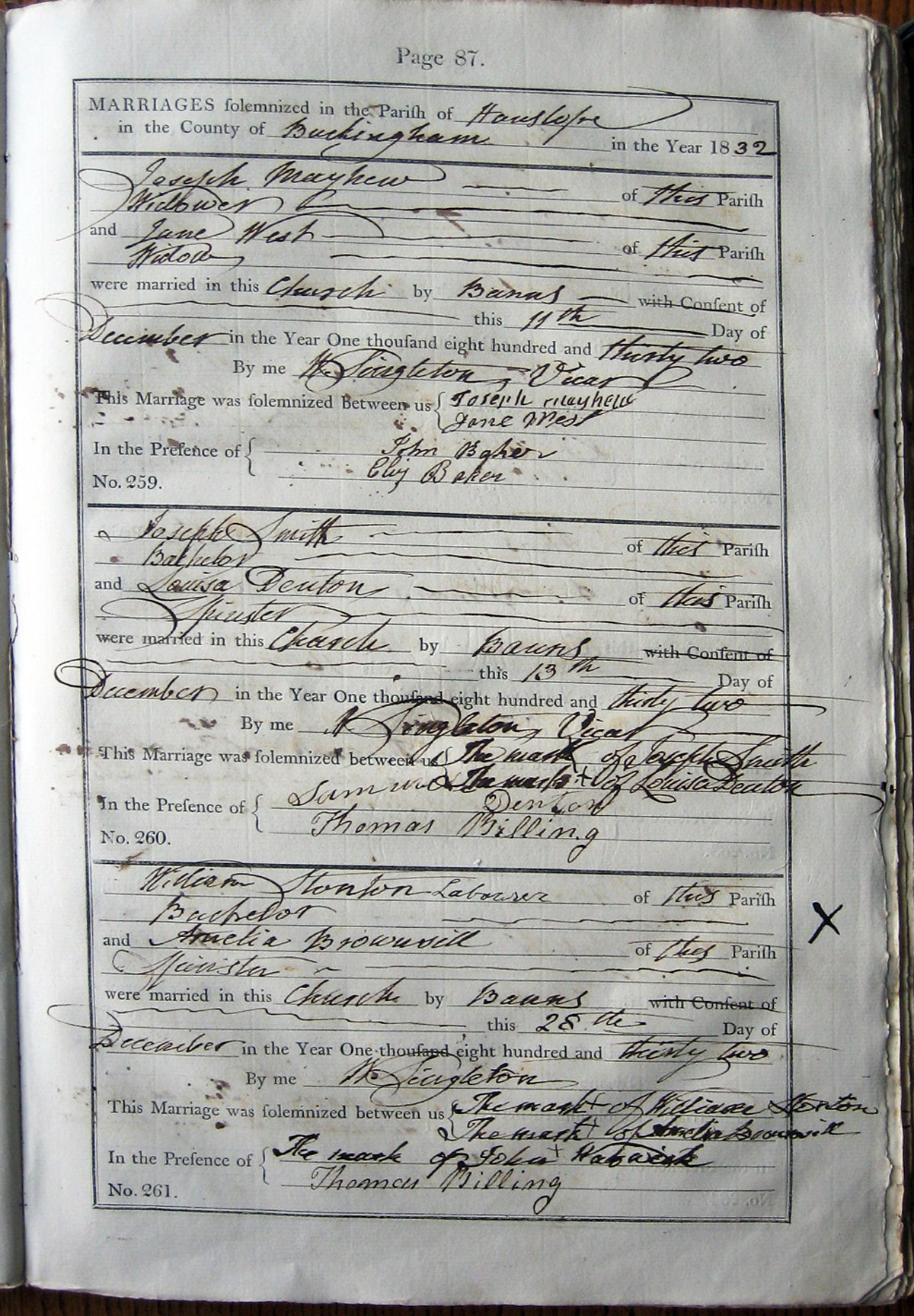 By me W Singleton, (no entry; he was Vicar)