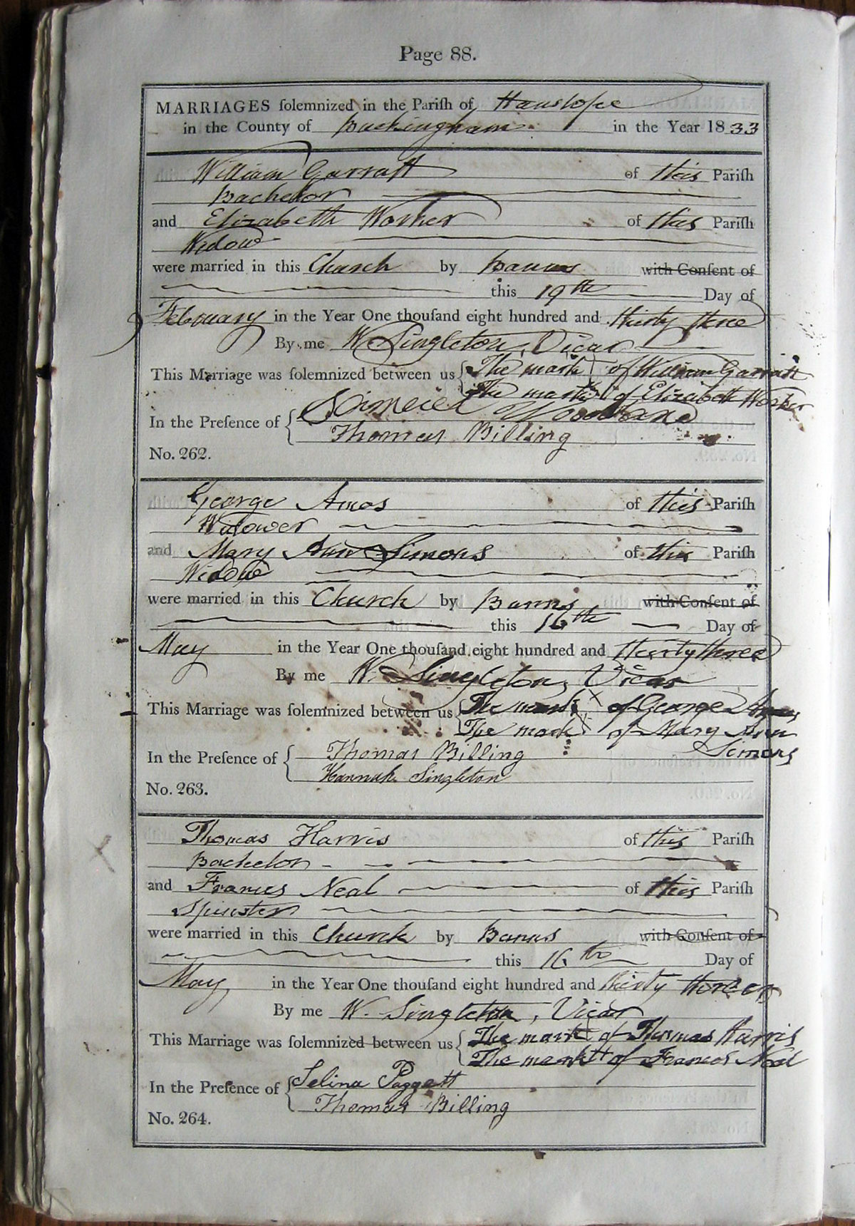 M A R R I A G E S solemnized in the Parish of ... Hanslope ...