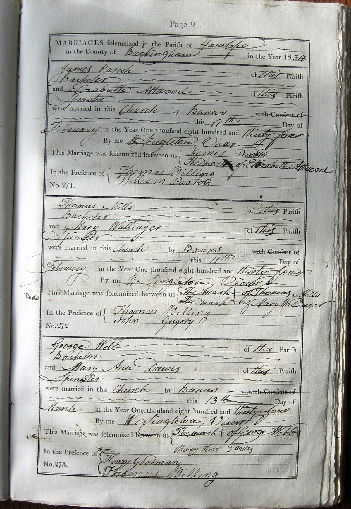 M A R R I A G E S solemnized in the Parish of ... Hanslope ...