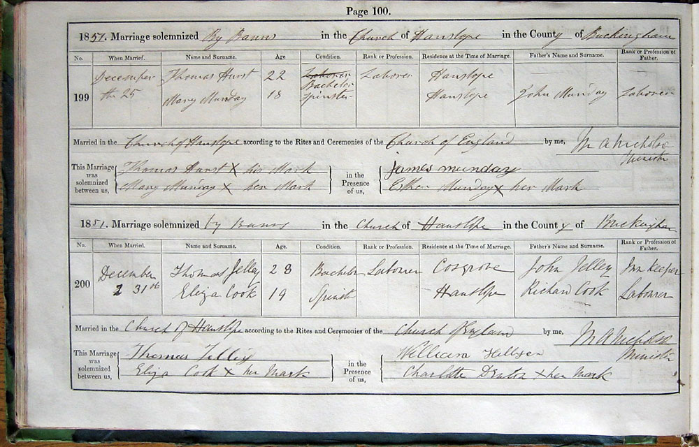 by Banns in the Church of Hanslope in the