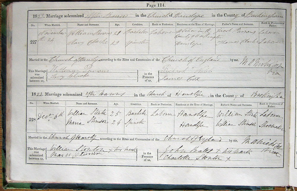 by Banns in the Church of Hanslope in the