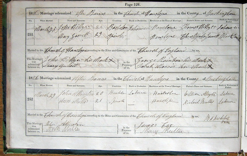 by Banns in the Church of Hanslope in the