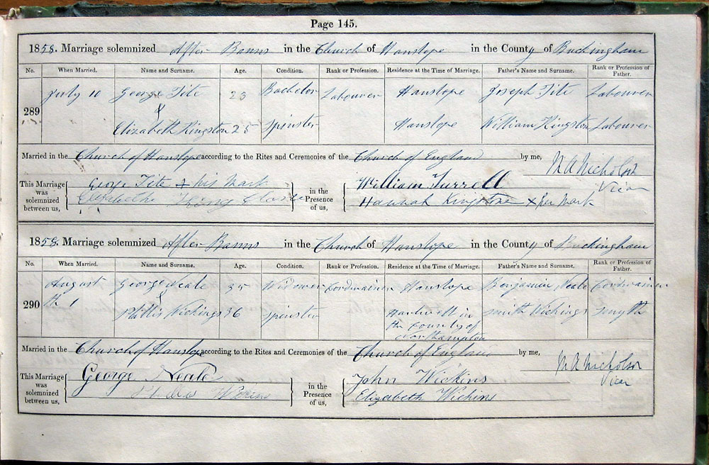 by Banns in the Church of Hanslope in the