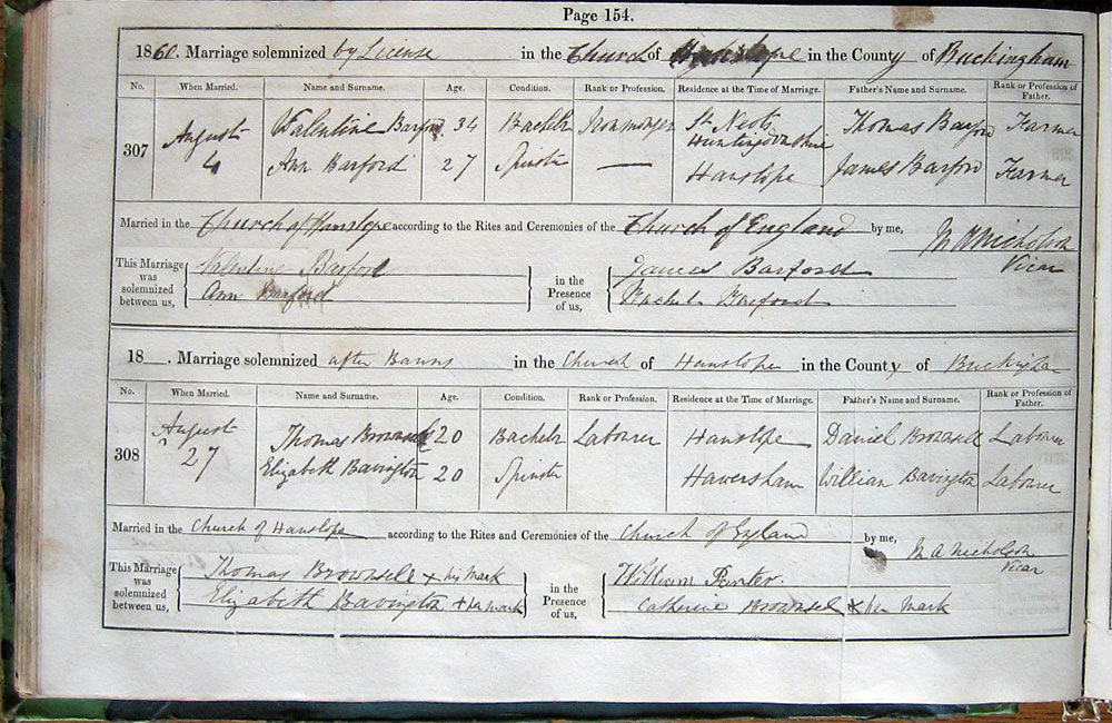 Married in Church of Hanslope according to the Rites and Ceremonies of the Church of England by me,