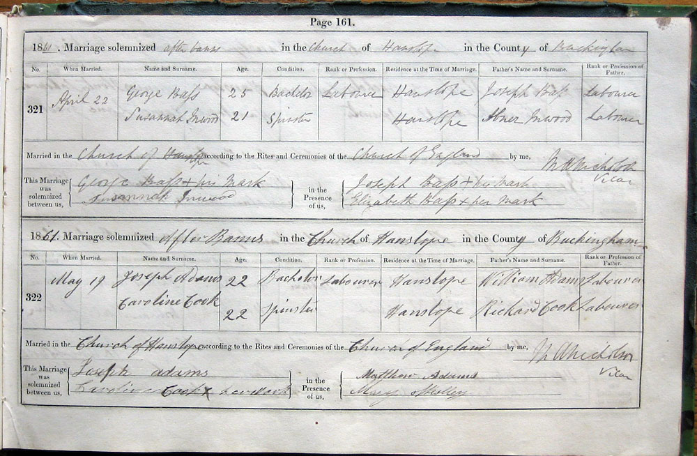Married in Church of Hanslope according to the Rites and Ceremonies of the Church of England by me,