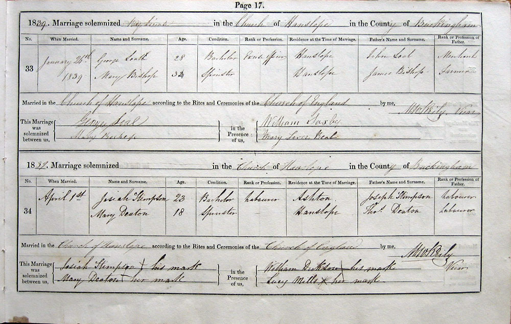 by Licence in the Church of Hanslope in the