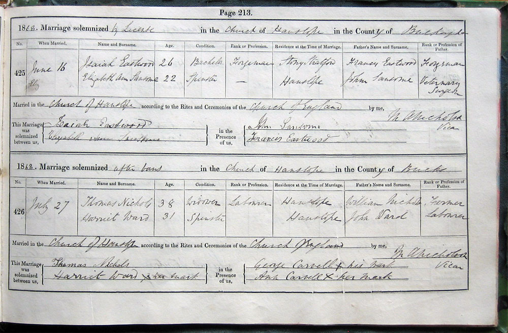 by Licence in the Church of Hanslope in the