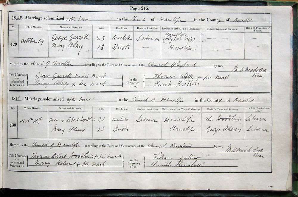 by Banns in the Church of Hanslope in the
