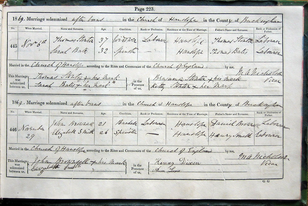 by Banns in the Church of Hanslope in the