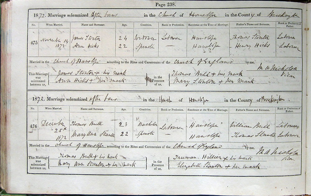 by Banns in the Church of Hanslope in the