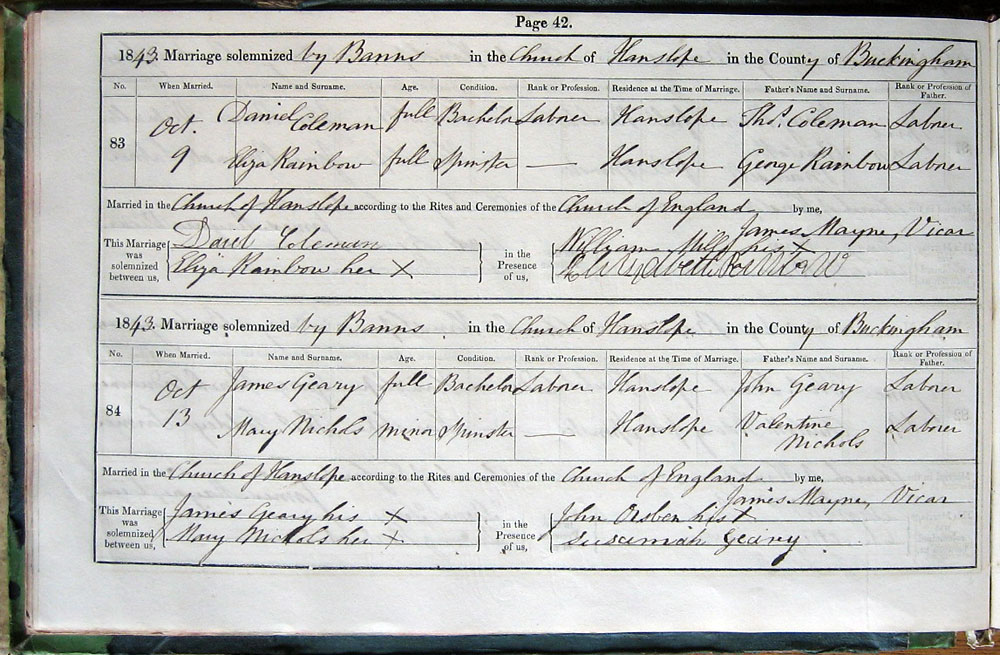by Banns in the Church of Hanslope in the