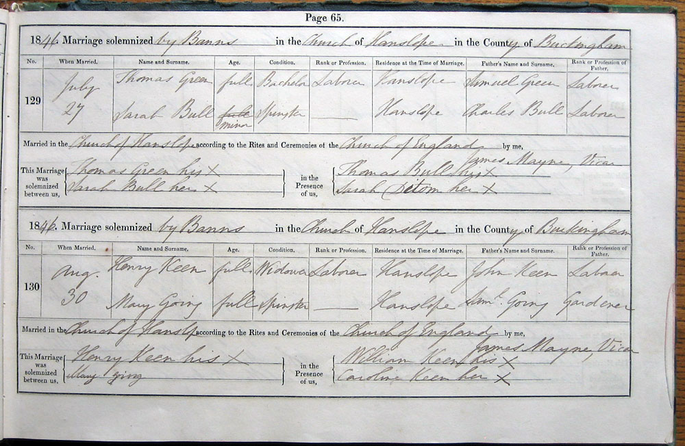 by Banns in the Church of Hanslope in the