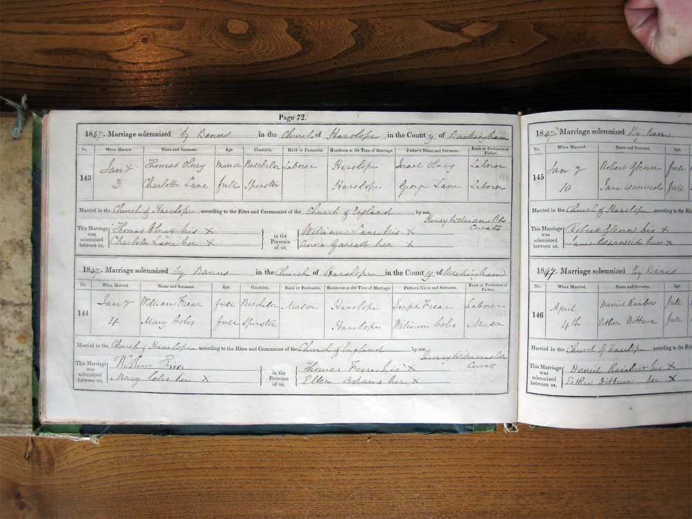1847. Marriage solemnized by Banns in the Church of Hanslope in the County of Buckingham