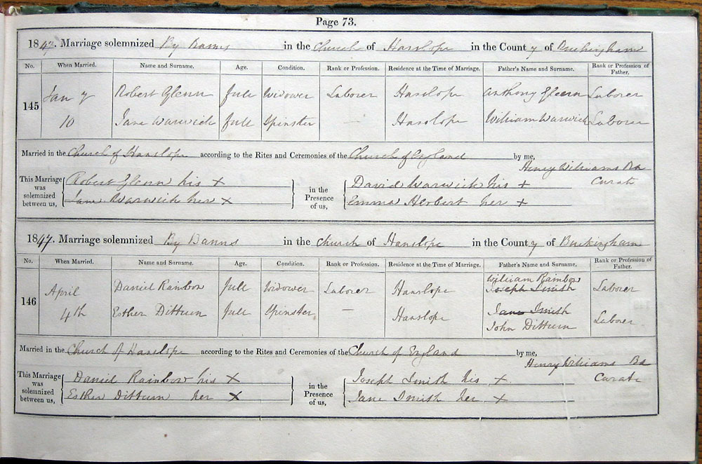 Married in Church of Hanslope according to the Rites and Ceremonies of the Church of England by me,