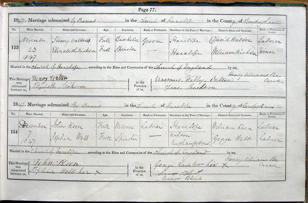 by Banns in the Church of Hanslope in the