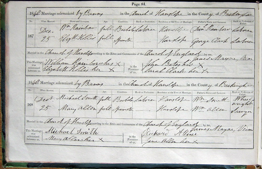 Married in Church of Hanslope according to the Rites and Ceremonies of the Church of England by me,