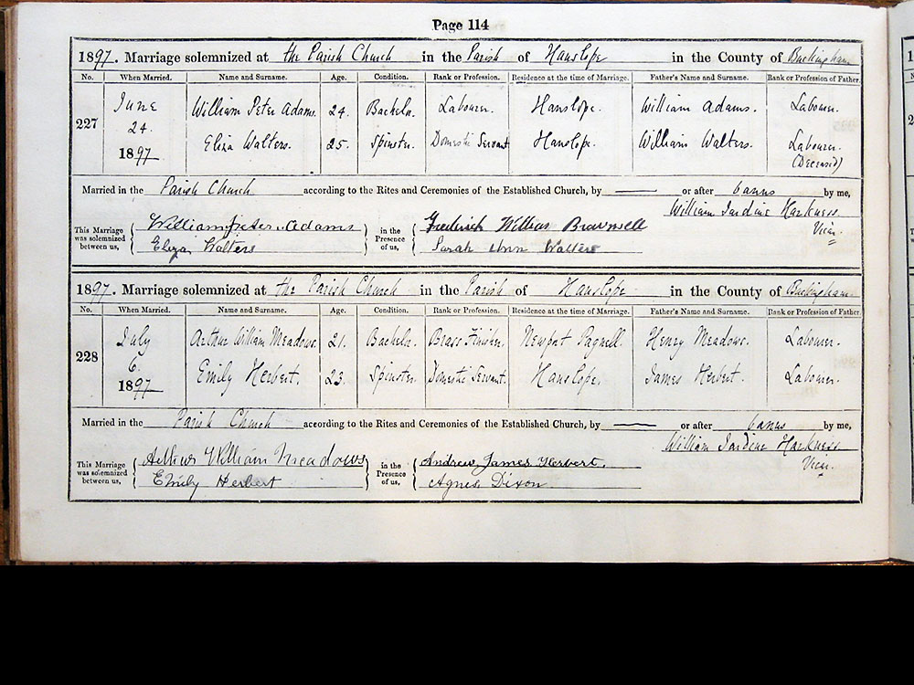 1897. Marriage solemnized the Parish Church in the Parish of Hanslope in the County of Buckingham