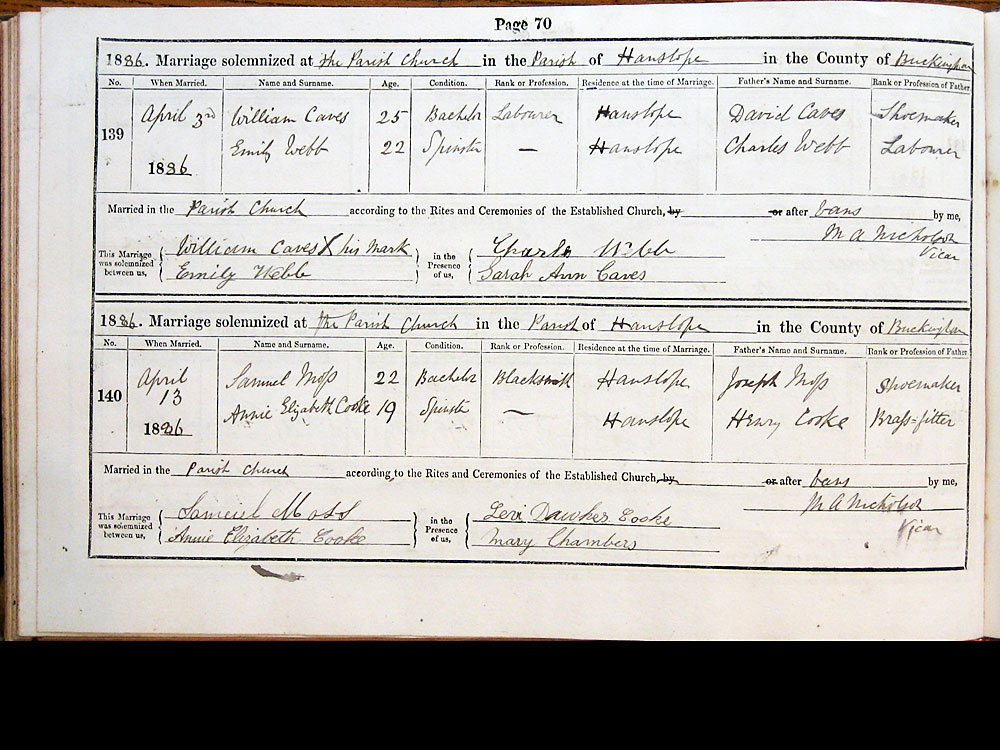 1886. Marriage solemnized the Parish Church in the Parish of Hanslope in the County of Buckingham